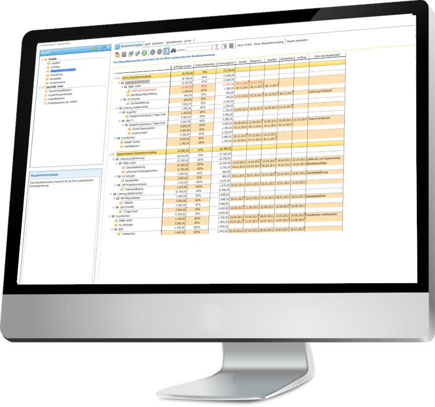 Mit Minicontrol können Sie Positionen beliebig erstellen oder verändern sowie Geschäftsbereiche oder Kundengruppen ganz nach Ihren Erfordernissen übersichtlich einrichten.
